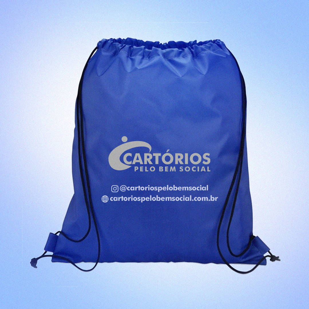 Leve seus pertences com estilo e contribua para um futuro melhor com esta sacola azul vibrante! Conhecida como sacola estilo mochila ou sacochila, ela é perfeita para o dia a dia, academia, passeios ou para carregar livros e materiais escolares. Também pode ser usada para a distribuição de brindes. As alças de cordão, além de charmosas, garantem praticidade e segurança no transporte.